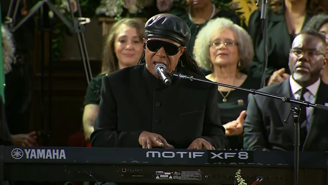 Stevie Wonder, a Grammy-award winner and a personal friend of Rev. Jackson, performed "They Won't Go When I Go" at the final celebration of life on Saturday.