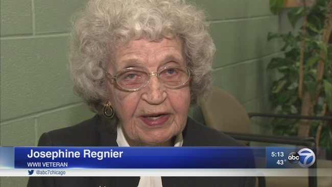 In January, the Bridgeview Lion's Club honored Regnier with its Veteran of the Year award and greeted with a standing ovation. During World War II, she served in the U.S. Navy and was stationed in Brooklyn. Regnier processed soldiers as they came home from the war.