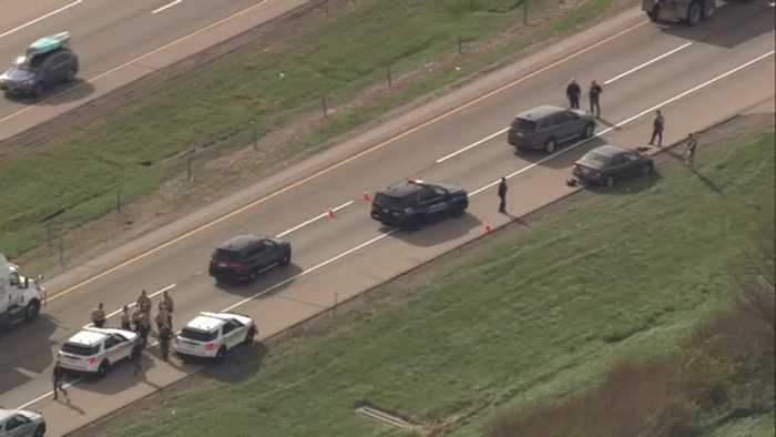 One person was shot amid a police chase on Interstate 88 in the far west suburbs on Monday afternoon.