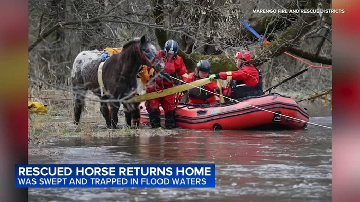Horse rescued from floodwaters recovers, returns home to suburban barn