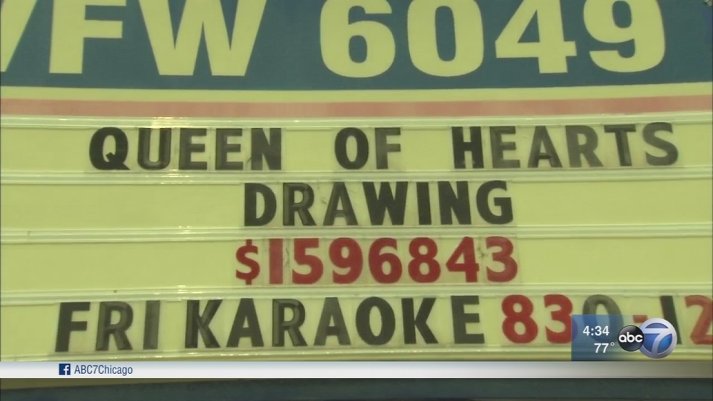 MORRIS, Ill. (WLS) -- The highly anticipated "Queen of Hearts" raffle at a Morris VFW was suspended Monday afternoon, just hours before the drawing for the $1.6 million jackpot.