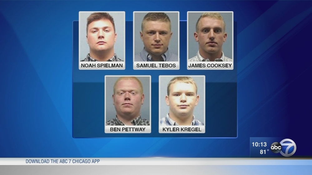 The charges stem from an accusation made by a former Wheaton College freshman, who told police the five football players dragged him against his will, restrained him with duct tape, beat him, stripped him down, tore both his shoulders and left him nearly naked on a baseball field.