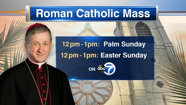 ABC7 will broadcast a Roman Catholic Mass for Palm Sunday from noon to 1 p.m., as well as next Sunday for Easter.