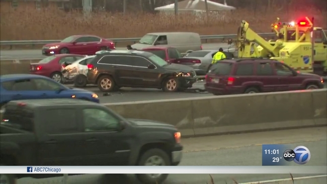On the Stevenson, the ABC7 StormTracker came across more than a dozen accidents, tons of spin outs and several cars in ditches throughout the morning. At least two cars were involved in a crash into a median and traffic was crawling throughout rush hour.