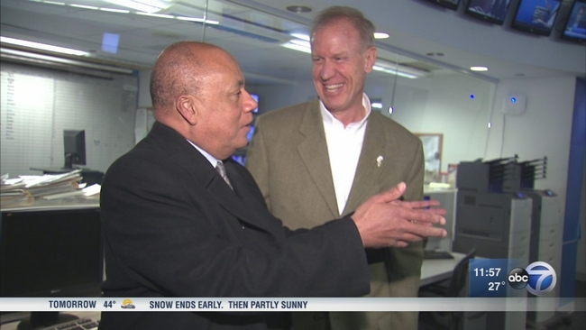Illinois Governor Bruce Rauner surprised Thomas with a special proclamation in the newsroom late Friday morning. Friday is officially Charles Thomas Day in the state of Illinois.