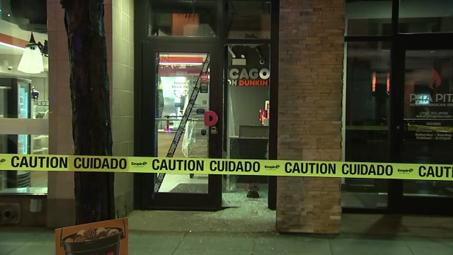 Video obtained by ABC7 shows the damage left behind at the Dunkin' store on Sunday.