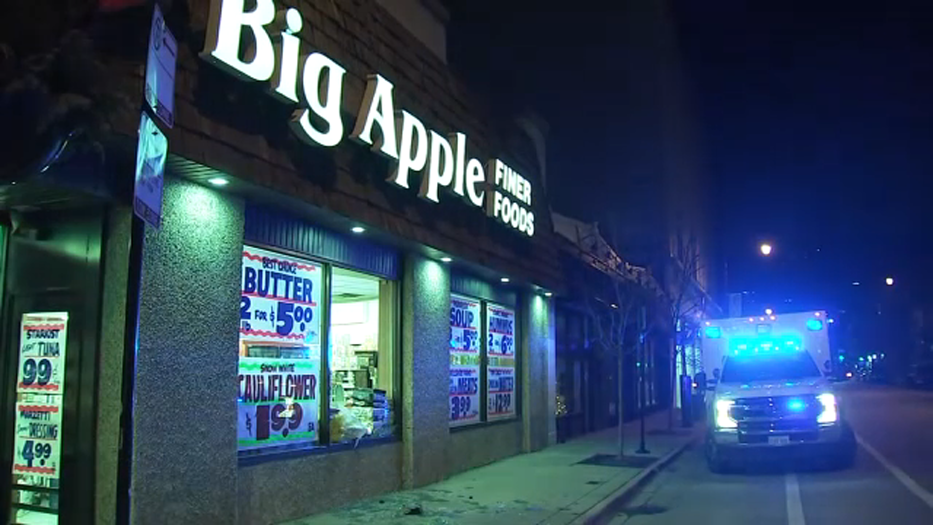 Video from ABC7 shows the damage at Big Apple Grocery Store and at Serai Cafe and Deli.