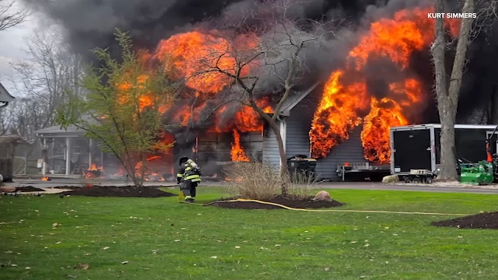Chicago police said the fire destroyed four garages along with four vehicles.