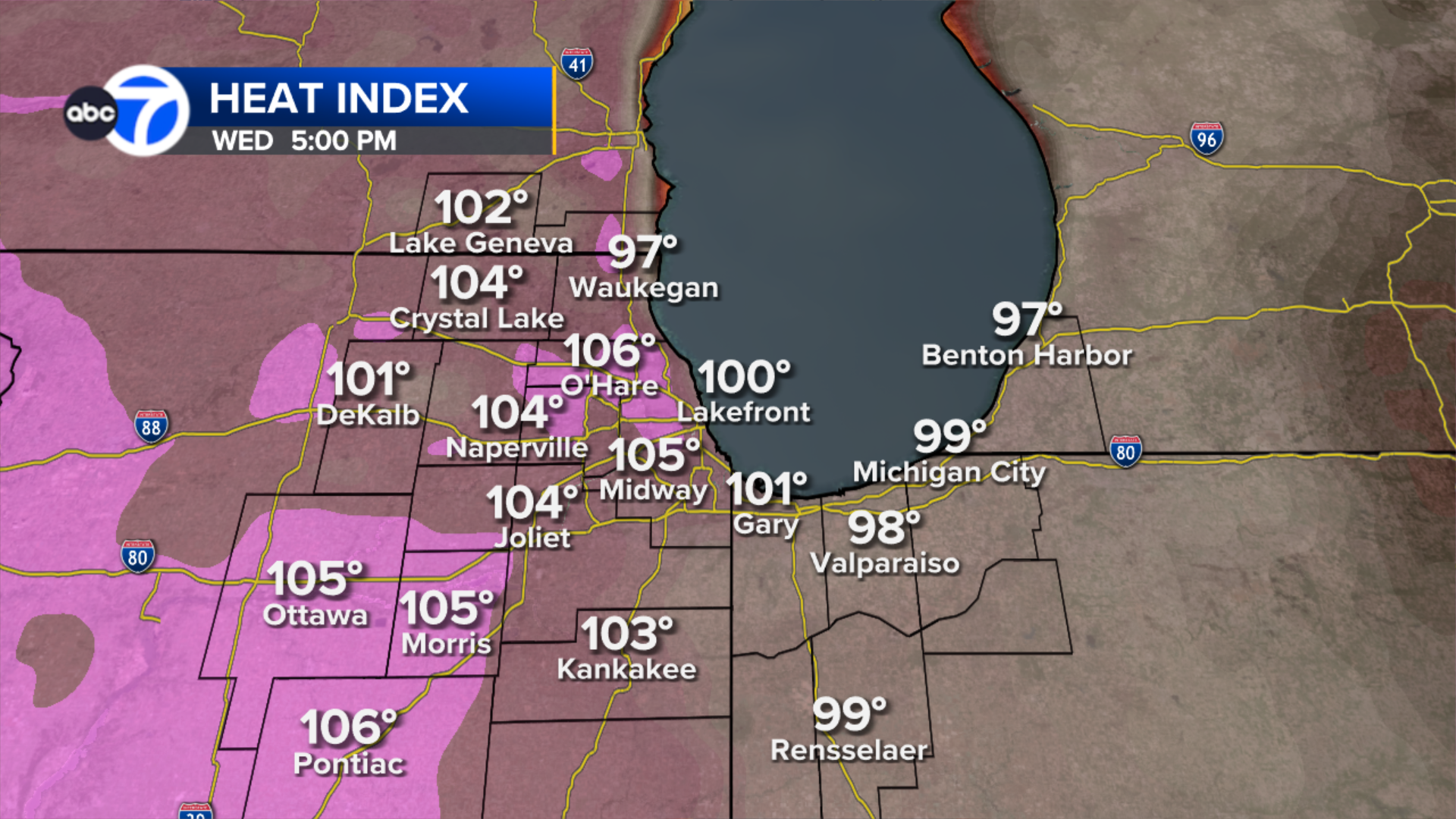 CHICAGO (WLS) -- The Chicago area will go experience dangerous temperatures and humidity both Wednesday and Thursday.