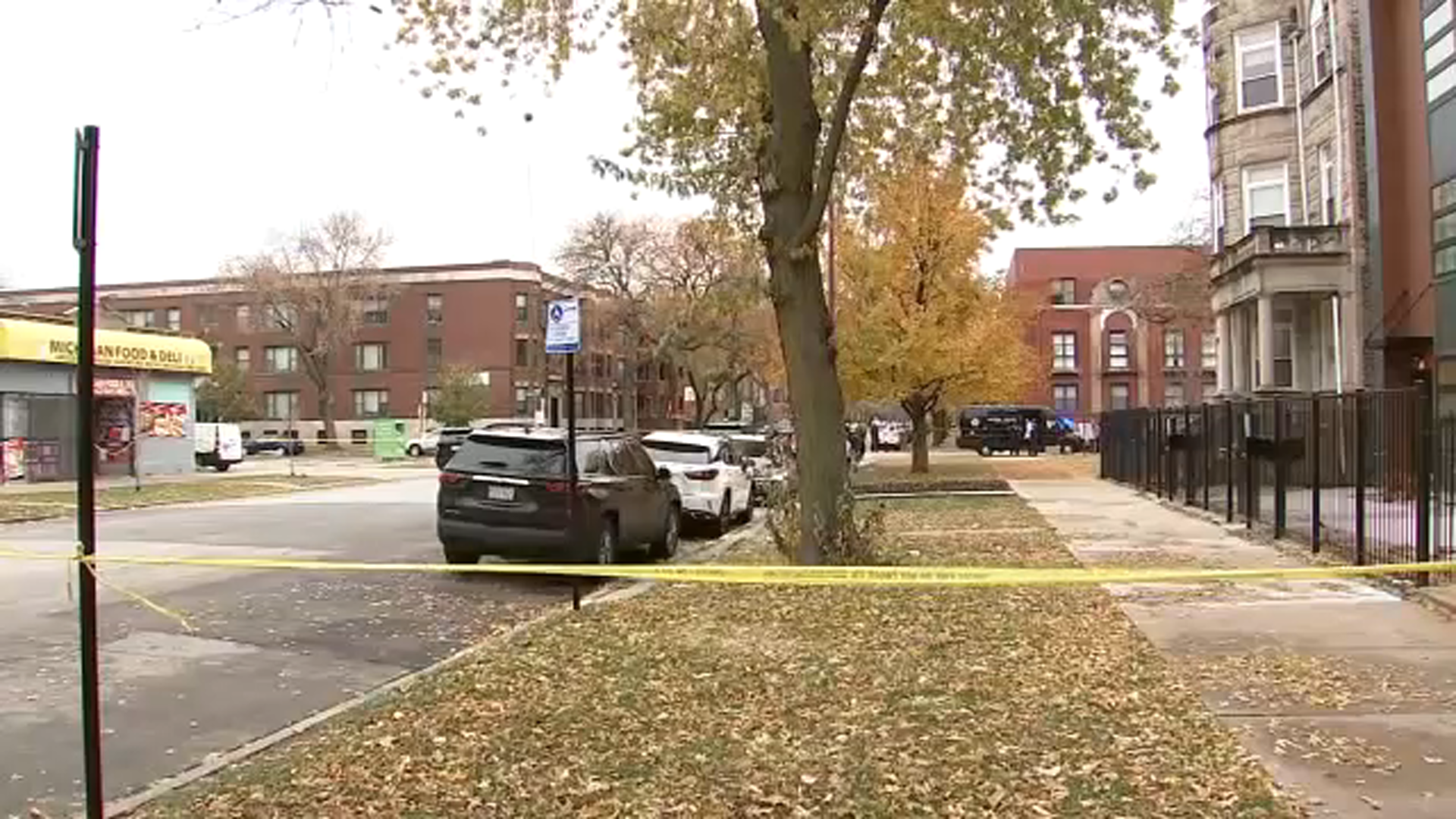 Video also shows crime scene tape near Michigan Food & Deli.