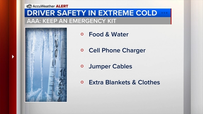 "We always talk about having that emergency car kit. This is a time more than ever to have it," AAA spokesperson Molly Hart said. "You want to have your cell phone charger, jumper cables, extra blankets and clothing for all passengers with this frigid cold, all these things to ensure safety for you."