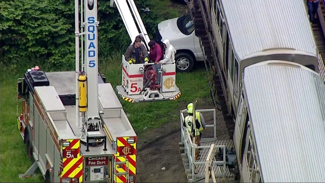 The Chicago Fire Department was seen taking people off the train and lowering them to the ground. By around 12:20 p.m., the last passengers were taken off the train and the truck used by CFD to evacuate the train pulled away.