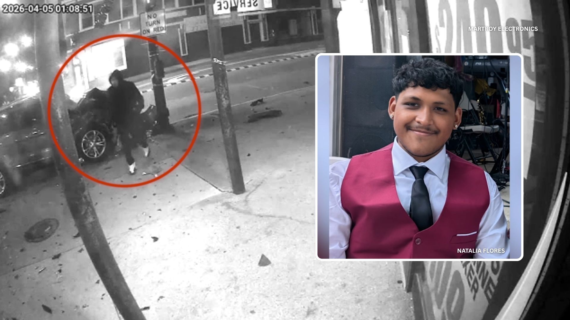 The new surveillance video shows the moment the Ford crashes into a light pole.