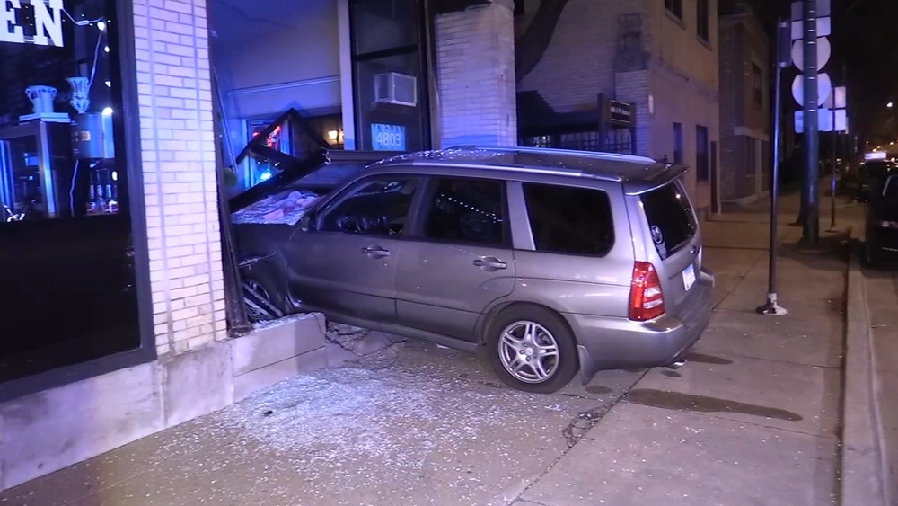 The force of the impact shattered the windows of a restaurant next door and ruptured a gas line, forcing neighboring businesses to evacuate for some time while NICOR crews worked to secure the area.