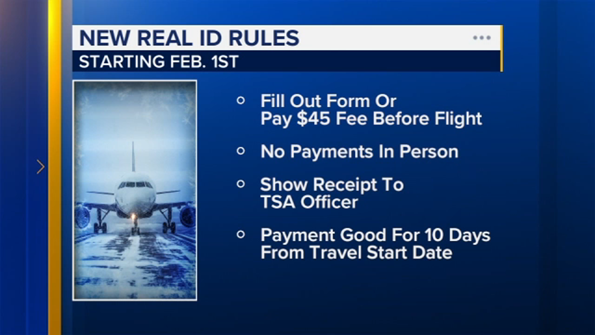 "The $45 fee is good for 10 days from the date of travel," Lorincz said. "But if you have future dates of travel coming up, I would encourage those individuals to make sure that they spend some time at the DMVs and Secretary of State offices to get their REAL ID-compliant driver's license."