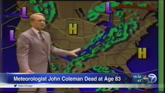 John Coleman, a former ABC 7 Chicago weatherman who co-founded the Weather Channel and was the original meteorologist on ABC's "Good Morning America" during his six-decade broadcasting career, has died. He was 83.