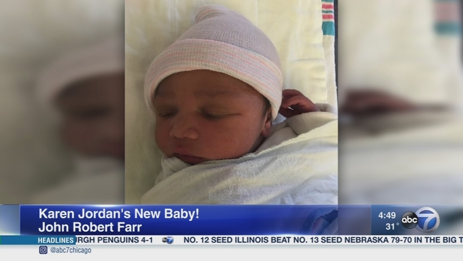 John Robert Farr is the newborn son of Karen Jordan and her husband, Christian Farr. He came into the world just before 7:30 p.m. Tuesday.