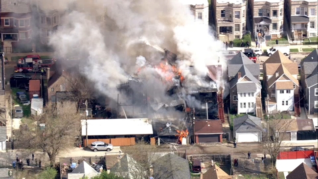 CHICAGO (WLS) -- Chopper 7 was over the scene as Chicago firefighters battled a fire that spread to multiple homes on Monday.