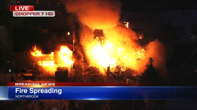An off-duty firefighter was on his way to work when he spotted the home fully engulfed by flames. The Northbrook Fire Department was on the scene about 8 minutes later. Chopper 7 HD was over the scene as the blaze spread.