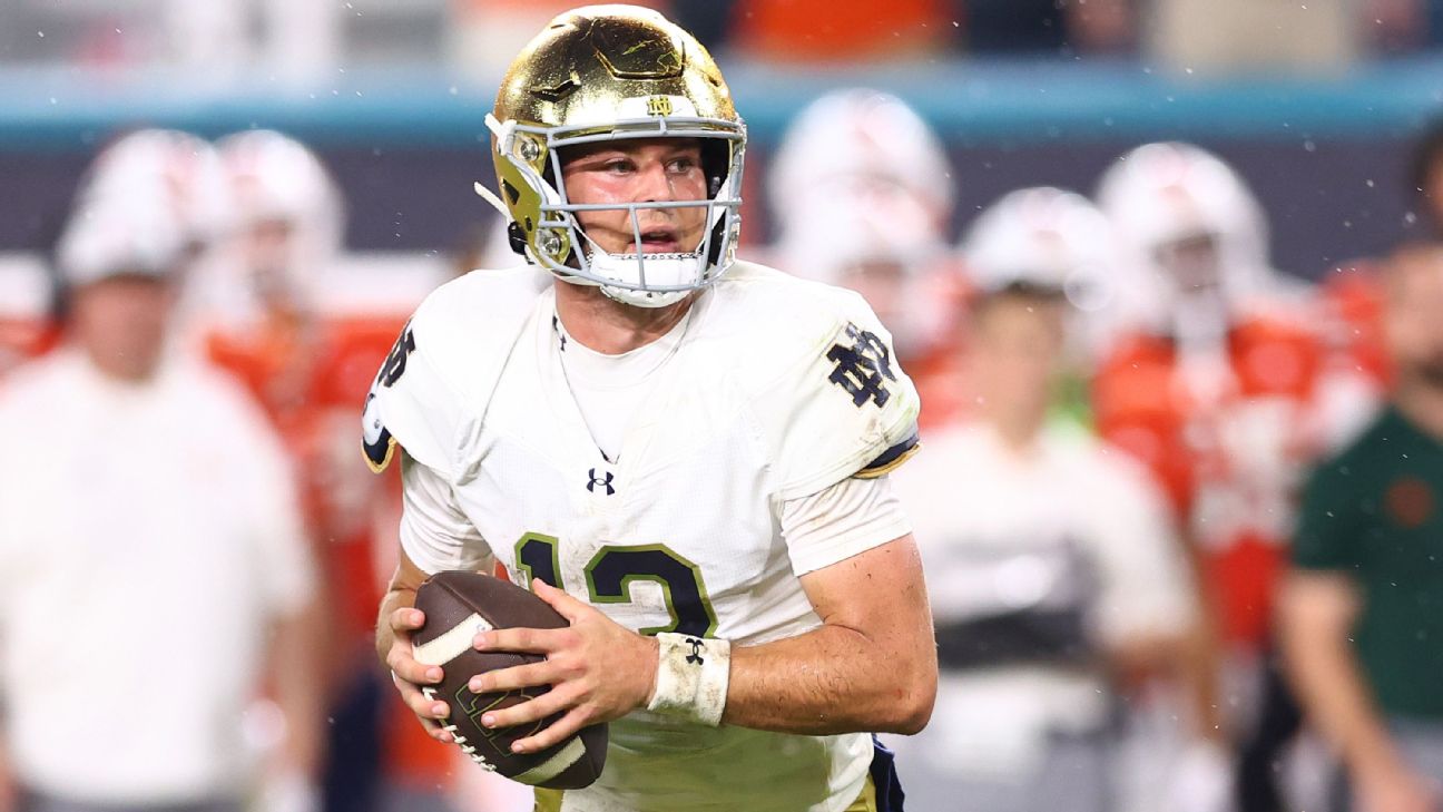 Carr this year replaces former Notre Dame quarterback Riley Leonard, who led the Irish to 13 straight wins last season before falling 34-23 to Ohio State in the CFP national championship game. Leonard was drafted by the Indianapolis Colts in April.