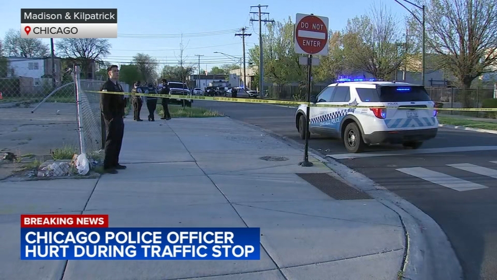 CHICAGO (WLS) -- A Chicago police officer was hurt during traffic stop Saturday evening on the West Side, police said.