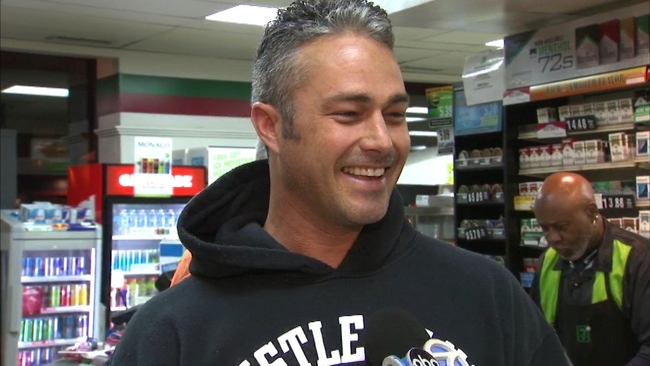 "Chicago Fire" actor Taylor Kinney got in line for a Powerball ticket around 5 a.m. before heading to set. ABC7 asked what he'd do if he won the big jackpot.