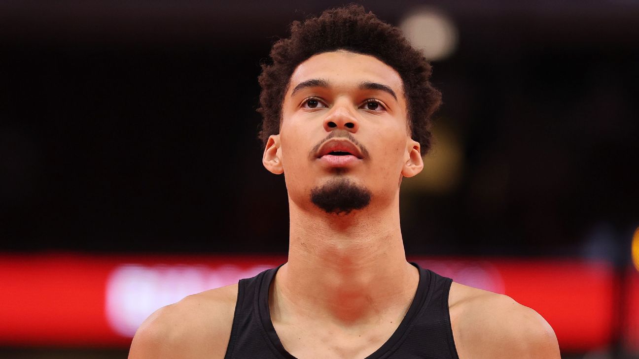 Wembanyama was averaging 25.7 points, 10.7 rebounds and 3.9 blocks heading into Monday.br/]