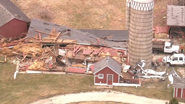 Some of the most substantial damage could be seen at the historic Reckinger farm near North Aurora. The farm's barn was toppled by the strong winds. Thankfully, no animals were present and the millions of dollars' worth of equipment is still intact, but the owner said he's never seen a storm like this come through before.
