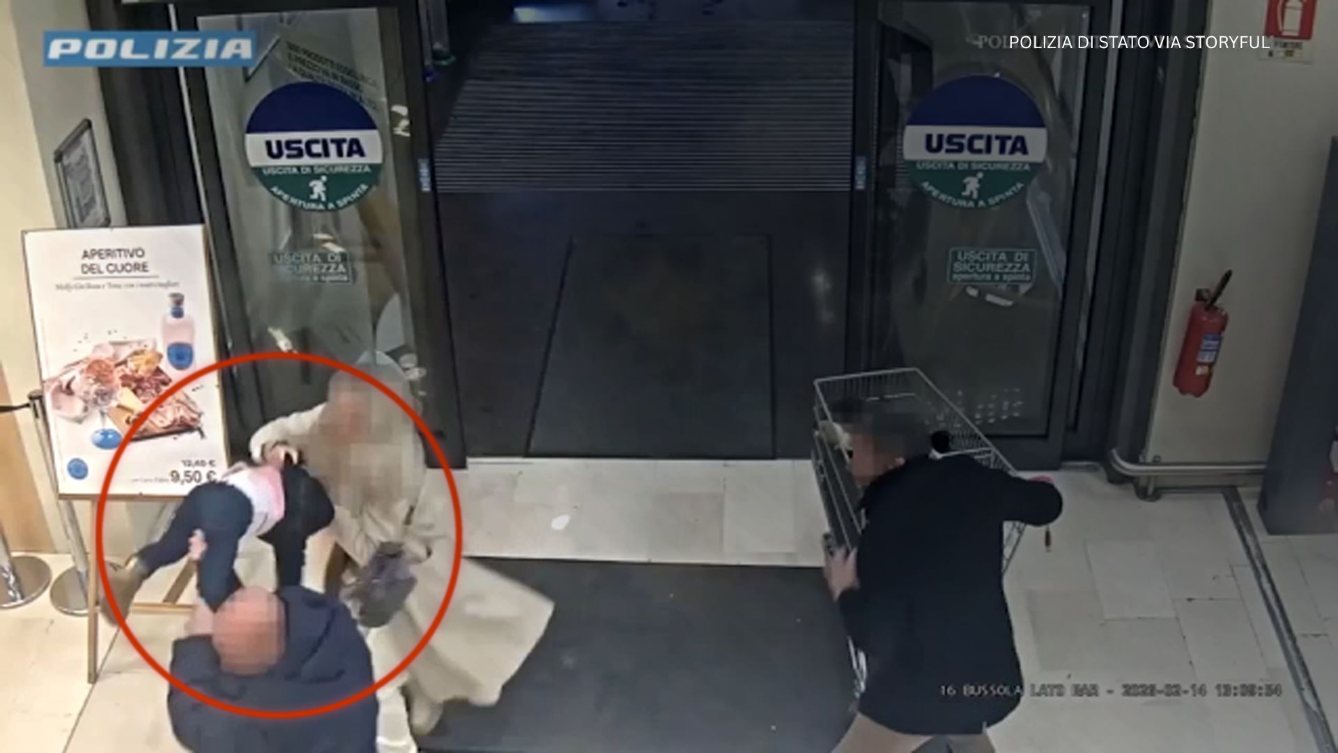 CCTV footage captured the shocking moment a man attempted to grab a one-year-old child at a supermarket in northern Italy.