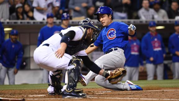 The Cubs retook the lead in the fifth against Tyson Ross (2-4). Wada drew a leadoff walk and scored on Dexter Fowler's triple to right, just beating the relay throw by Jedd Gyorko. Fowler came in on Bryant's sac fly to left.
