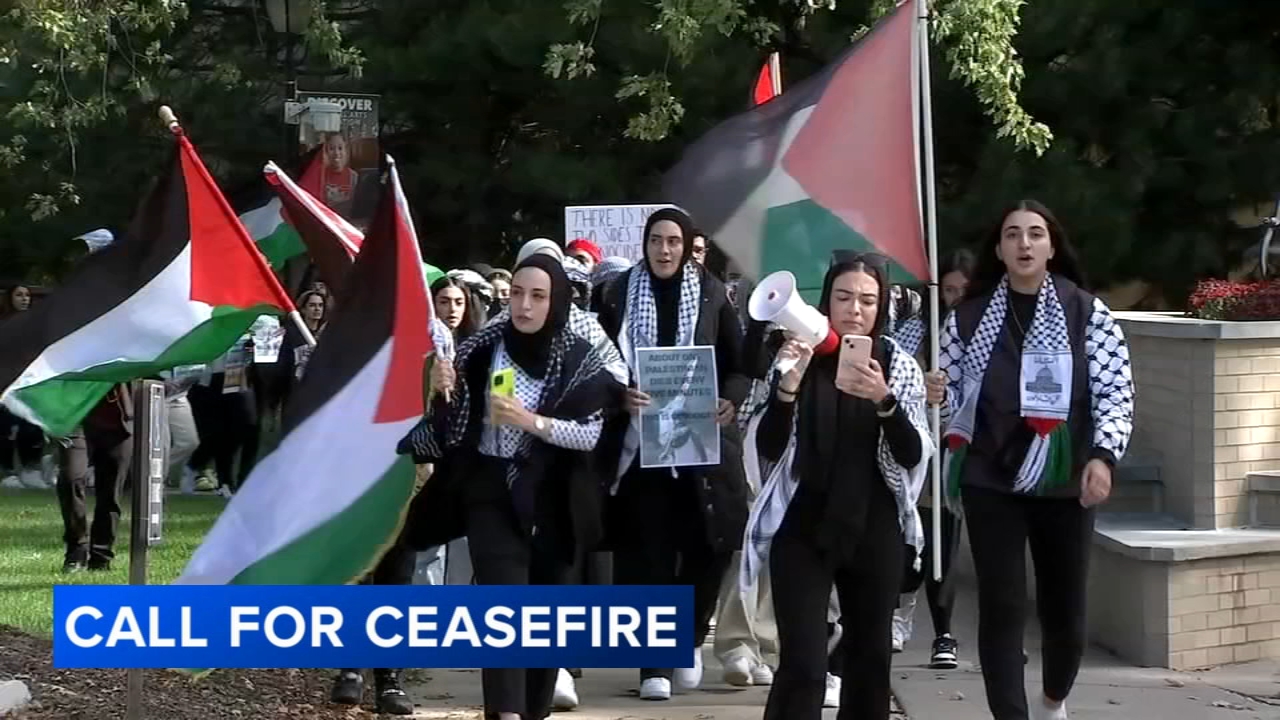 CHICAGO (WLS) -- Protesters rally in downtown Chicago Sunday to stop the escalating violence in the Mideast between Jews and Palestinians.