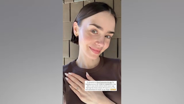 Actress Lily Collins is thanking a Chicago company, after they recovered her engagement ring three years after it was stolen.