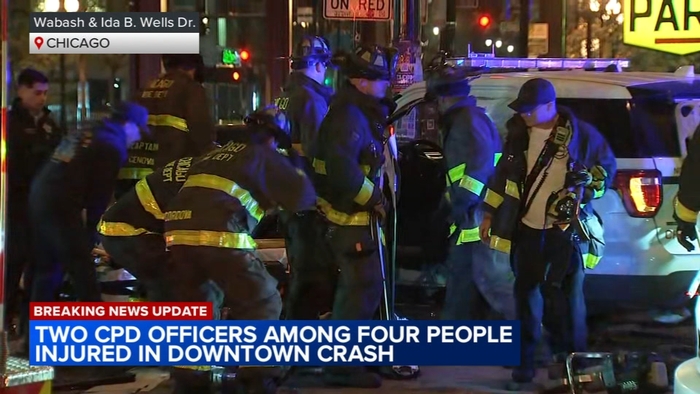 2 officers among 4 injured in Loop crash; driver in custody: CPD