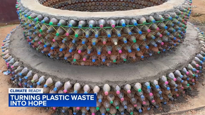 Classrooms, building built out of recycled plastic water bottles
