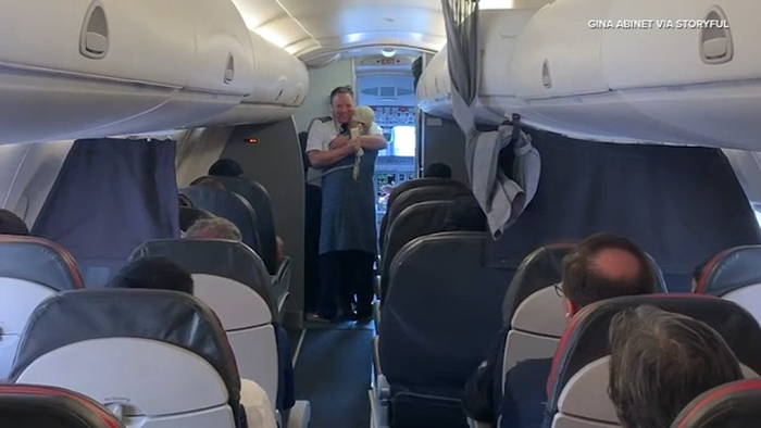"My grandpa passed away earlier this year, so he never got the opportunity to fly with me," the pilot said as he surprised his grandmother on her flight to Chicago.