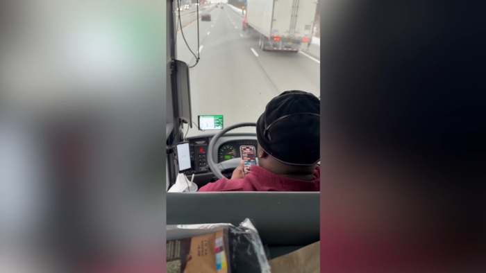 Bus driver texts during snowy drive from Chicago to Michigan | Video