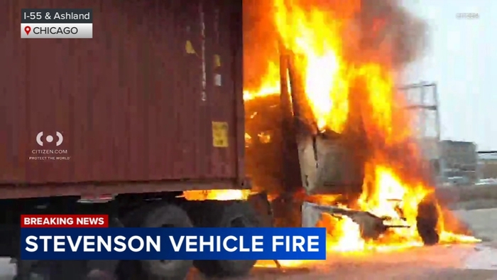 Lanes reopen after large semi fire on Stevenson Expressway: police